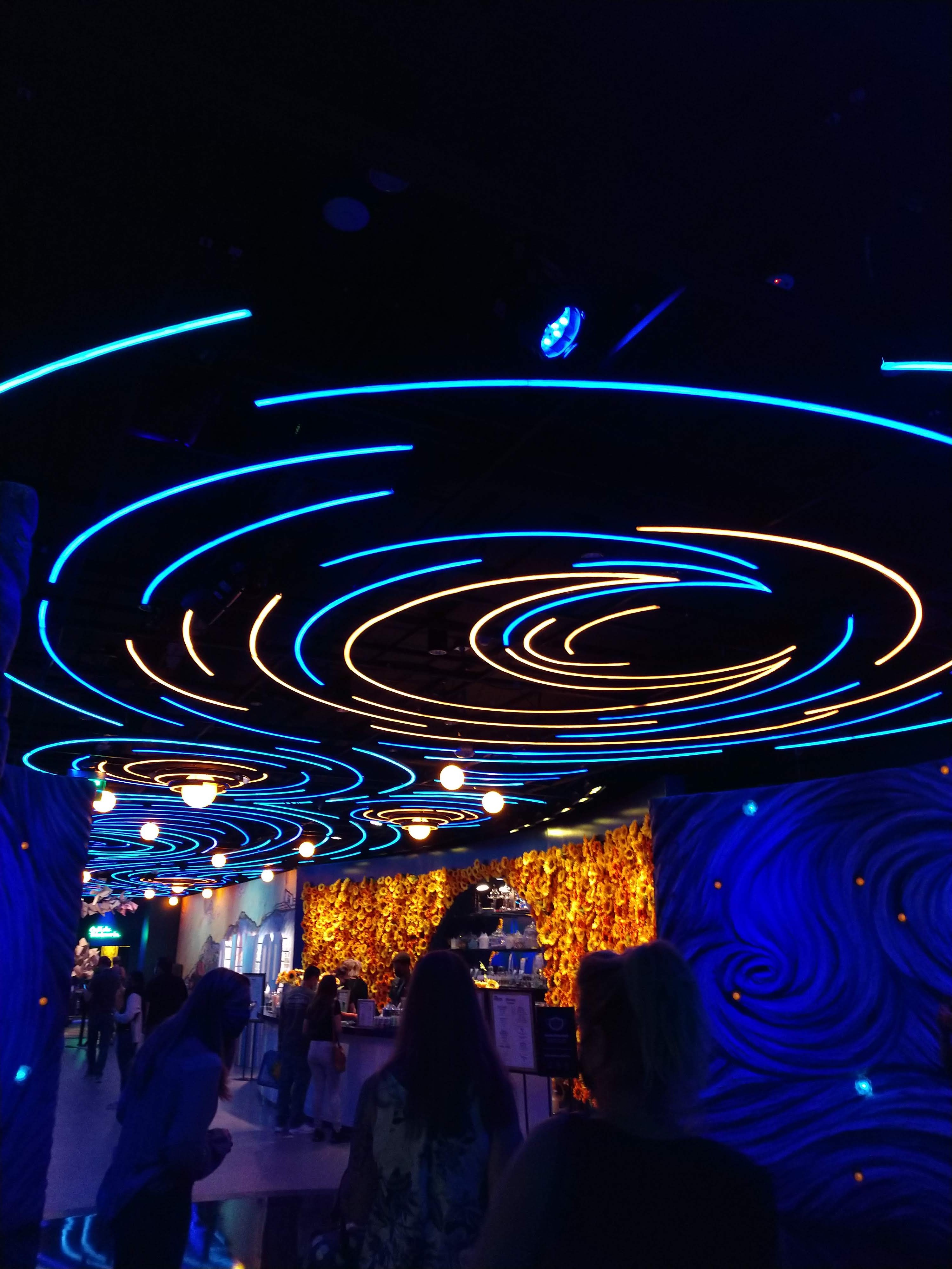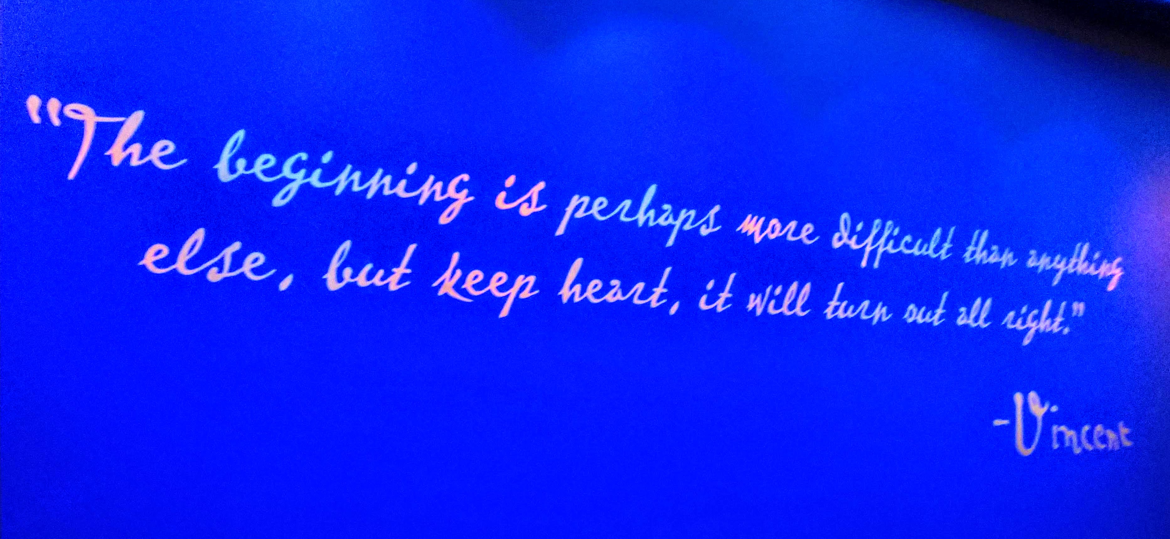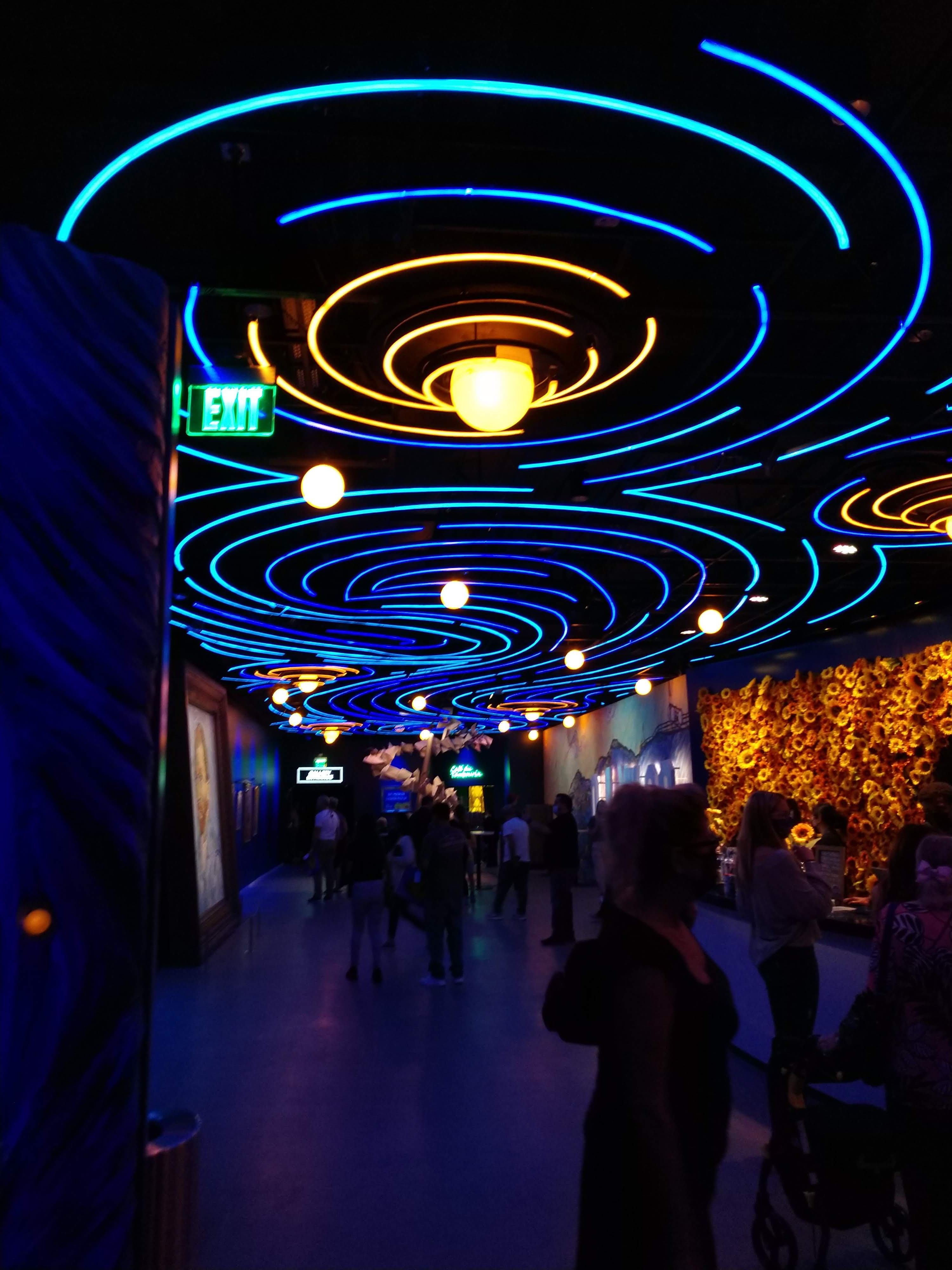 For Mothers Day, my daughter gave me tickets to the Immersive Van Gogh, and the day finally arrived. In a building located at Sunset and Ivar, we saw the most amazing art presentation featuring the works of Vincent Van Gogh. We entered the lobby and walked down an aisle of neon lights into the viewing room.