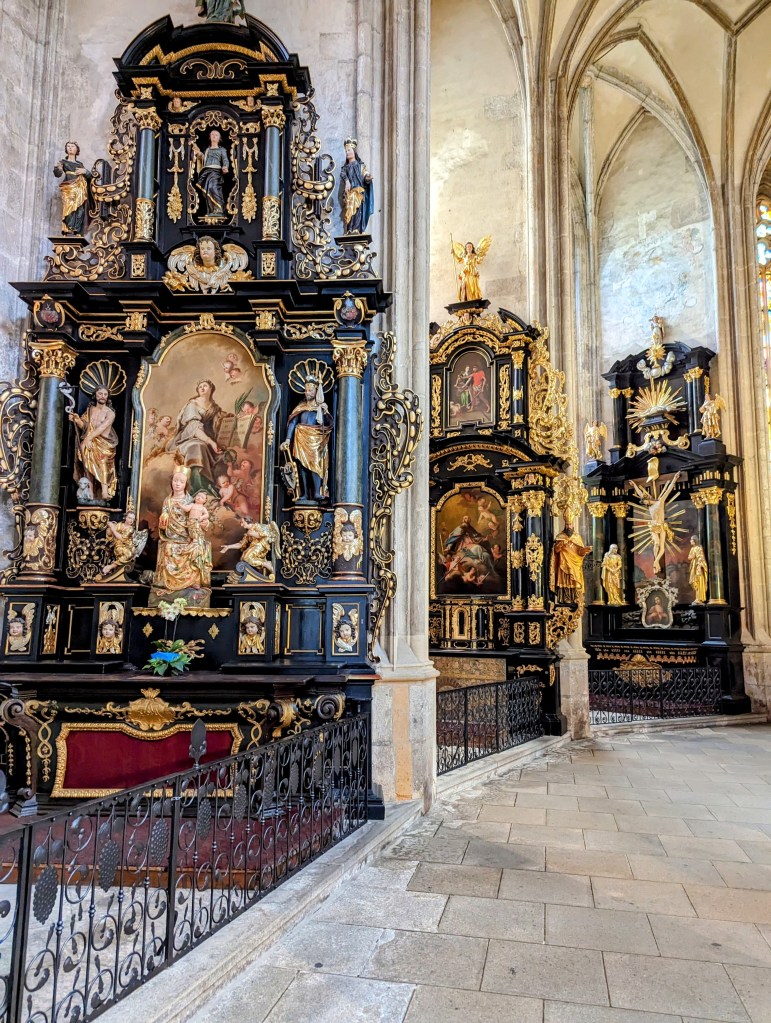 In Kutna Hora was St. Barbara Cathedral, a Roman Catholic Church located beneath the Cemetary Church of All Saints – part of the former Sedlec Abbey. About an hour and a half from Prague.