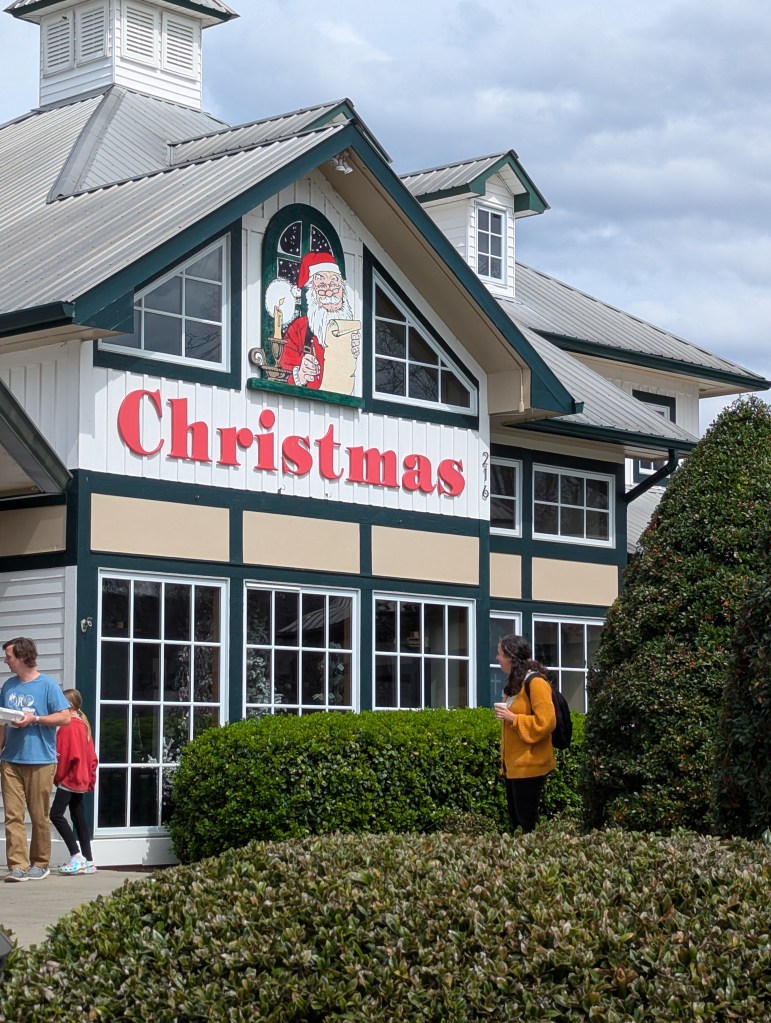 A huge year-around Christmas Store. I couldn’t resist taking a bunch of photos (maybe some ideas for future decorations).